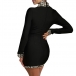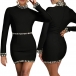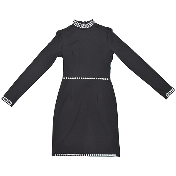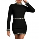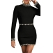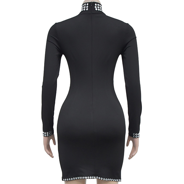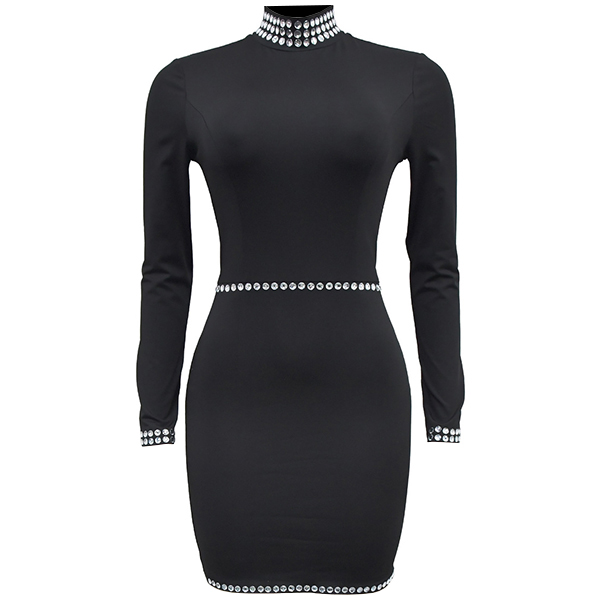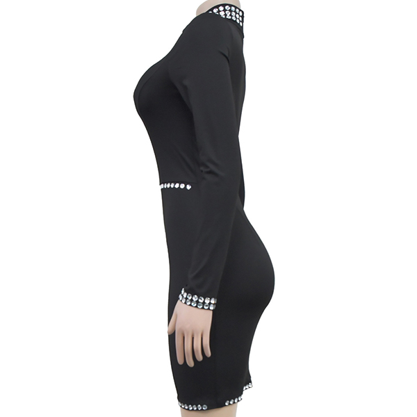 Fashion Rhinestone Mock Neck Long Sleeve Bodycon Dress