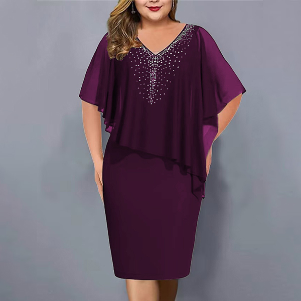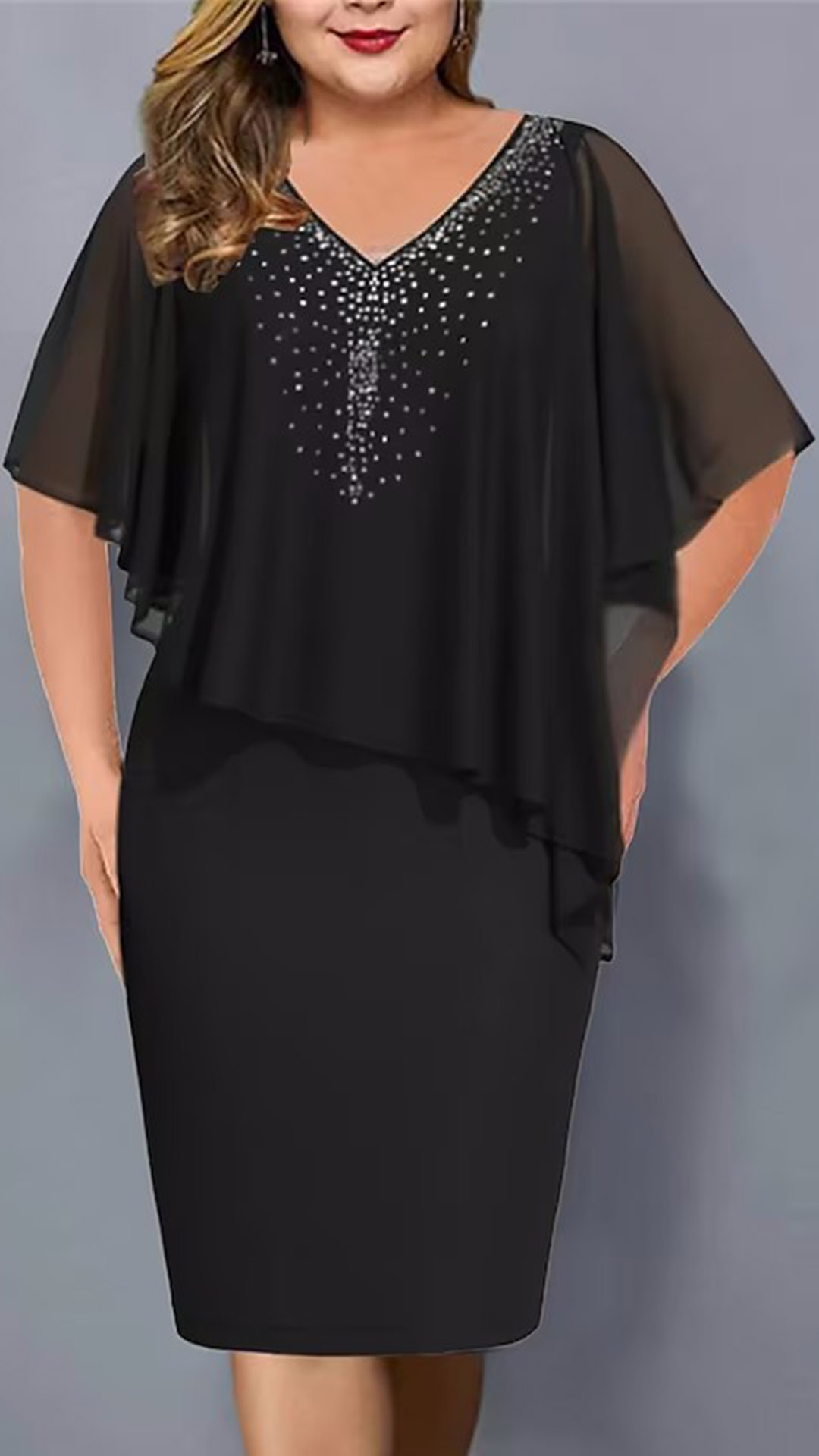 Fashion Rhinestone Ruffled V-neck Short Sleeve Bodycon Dress