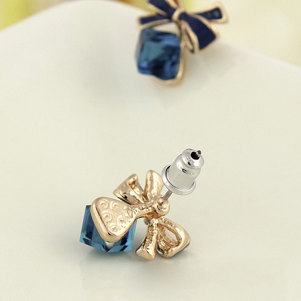 Fashion Rhinestone Spliced Bow-knot Stud Earrings