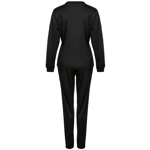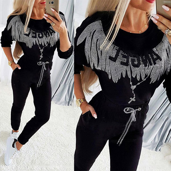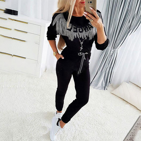 As for a laid-back and fashionable autumn look,this two-piece set can be your wise choice. Including a long sleeve round neck sweatshirt and a pants,its soft and breathable fabric can give you a comfortable day,while the rhinestone details will make it look more shinning and attractive.