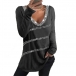 Fashion Rhinestone Spliced V-neck Long Sleeve Rivets Loose T-shirt