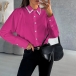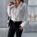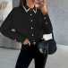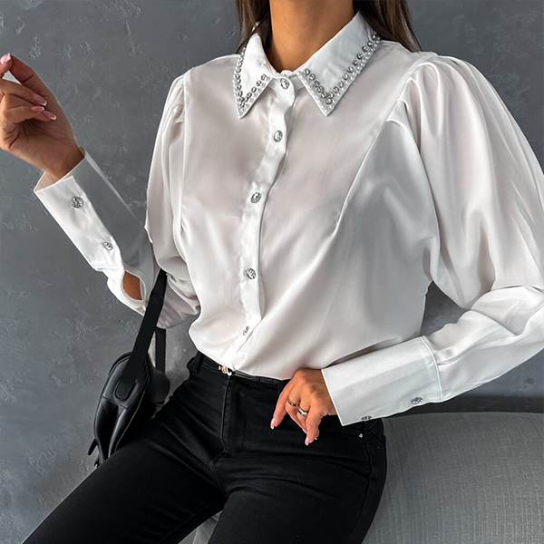 Fashion Rhinestone Stand Collar Long Sleeve Blouse