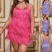 This eye-catching plus-size party dress features a rhinestone-embellished and a flirtatious tassel trim, creating a glamorous, show-stopping look. Perfect for party wear!