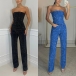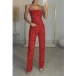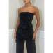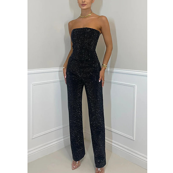 This Two-piece Set consisting of a Strapless Bandeau and Straight-cut Pants, a glamorous and show-stopping ensemble that exudes sophistication and luxury. The rhinestone detailing offers a radiant and eye-catching look, creating a statement-making aesthetic that is perfect for special occasions and evening events. Pair this set with strappy heels and statement jewelry for a head-turning and elegant ensemble.