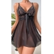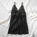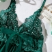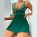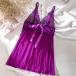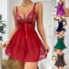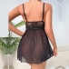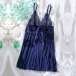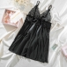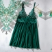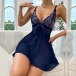 Fashion Rhinestone V-neck Bowknot Backless Lace Spliced Chiffon Nightwear Dress