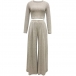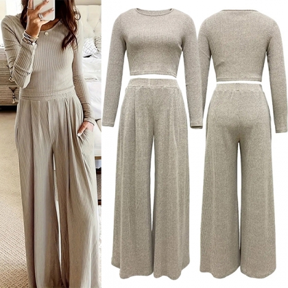 Fashion Ribbed Two-piece Set Consist of Crop Top and Wide-leg Pants