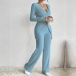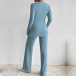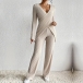 Fashion Ribbed Two-piece Set Consist of Cross Shirt and Straight-cut Pants