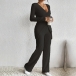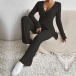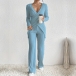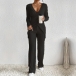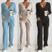 This set features a ribbed fabric, a unique cross shirt with V-neck and front slit design, and straight-cut pants for a coordinated and fashionable look. Crafted from high-quality ribbed fabric with a comfortable and stretchy feel, this two-piece set is both stylish and practical.