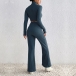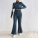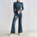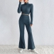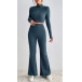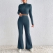 Fashion Ribbed Two-piece Set Consist of Mock Neck Crop Top and Wide-leg Pants