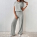 Fashion Ribbed Two-piece Set Consist of Round Neck Shirt and Straight-cut Pants