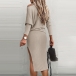 Fashion Ribbed Two-piece Set Consist of Round Neck Sweater and Slit Skirt