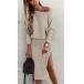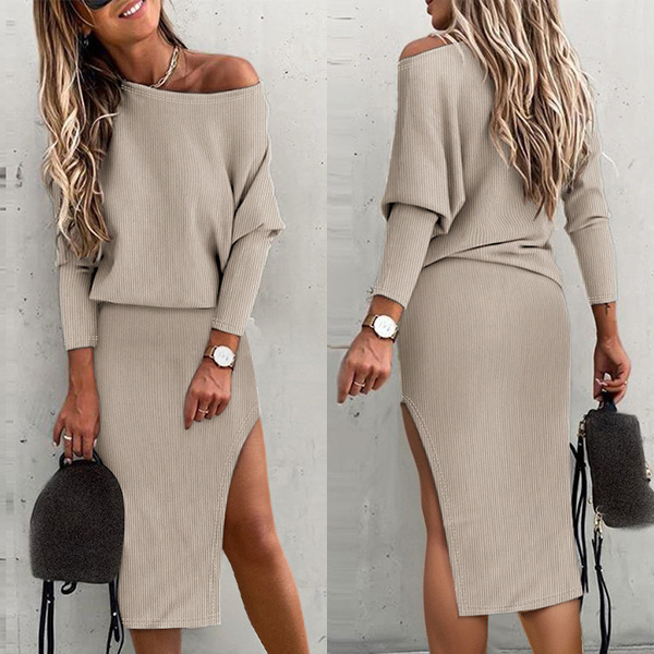 Stay on-trend with this Ribbed Two-piece Set. The ribbed texture adds a touch of sophistication and interest to the ensemble. The round neck sweater offers a classic and timeless look, while the slit skirt adds a flirty and feminine touch. Made with high-quality fabric, this set offers both comfort and durability.