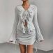 Fashion Ribbed Two-piece Set Consist of Ruffle Cardigan and Side Drawstring Skirt