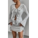 Elevate your style with this trendy ribbed two-piece set, consisting of a ruffle cardigan and a side drawstring skirt. The ruffle cardigan adds a feminine and playful touch. The side drawstring skirt adds a unique and trendy detail, allowing you to adjust the fit and silhouette to your liking. Pair this set together for a coordinated and fashion-forward outfit, or mix and match the pieces with other items in your wardrobe for endless styling options.