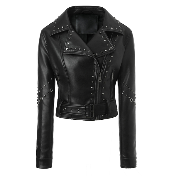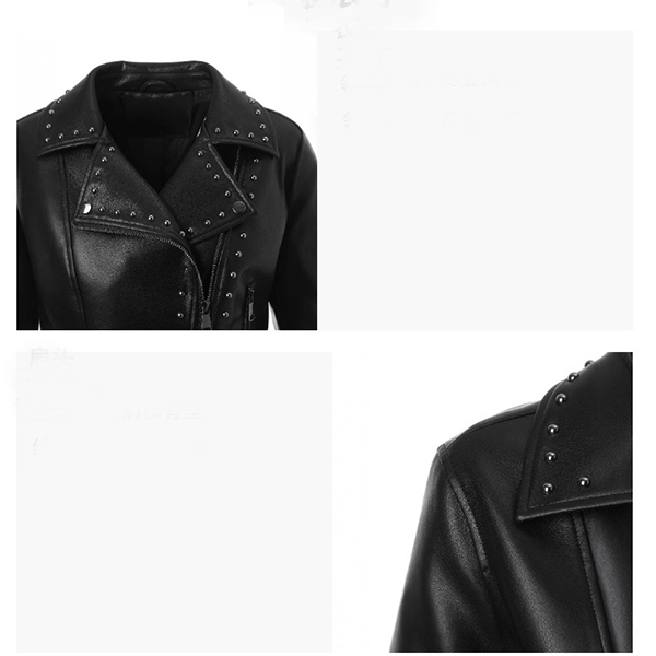 This jacket features edgy rivet detailing with classic notch lapel styling and dynamic slant zipper design for contemporary rock-inspired elegance. The rivet embellishments create bold hardware appeal with modern edge sophistication. Wanna have a try?