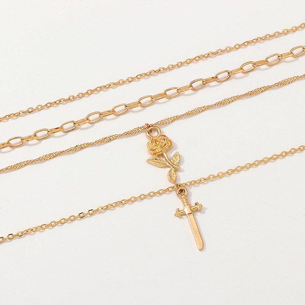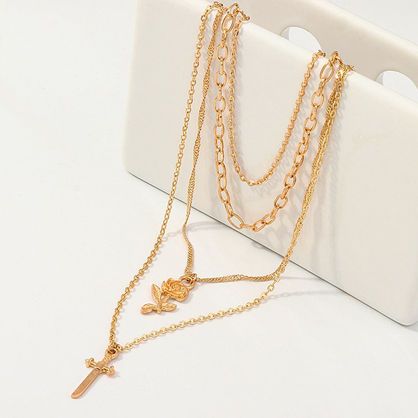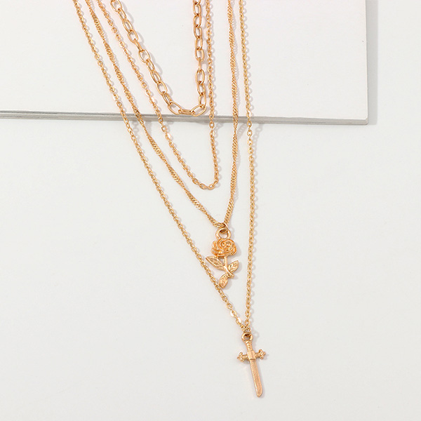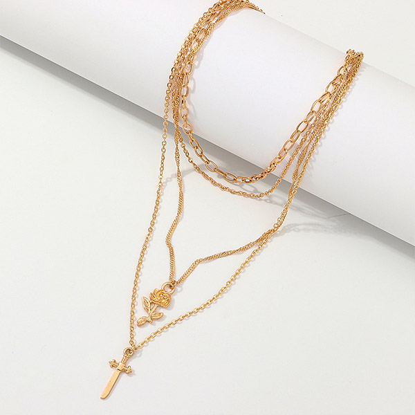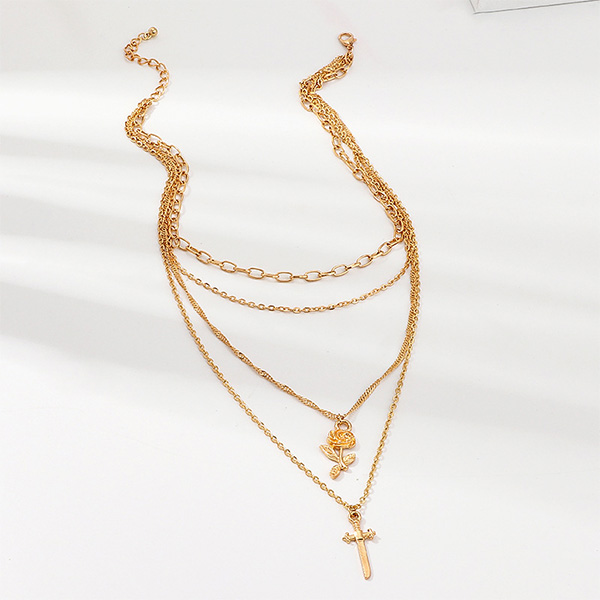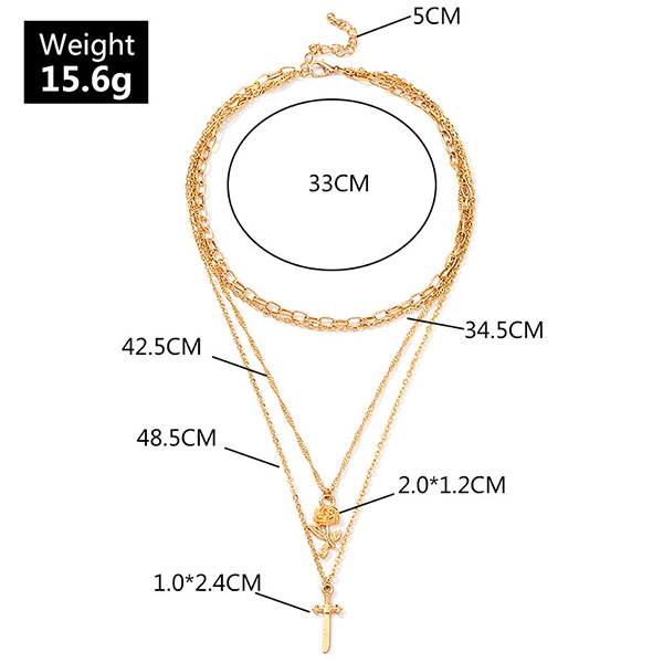 Fashion Rose Cross Pendant Multi-layer Necklace