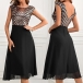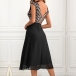 This dress combines a round neckline, a dazzling sequined bodice, a backless design, and a flowy chiffon skirt, creating a glamorous and enchanting ensemble. Pair it with heels and minimal accessories to let the dress take center stage.
