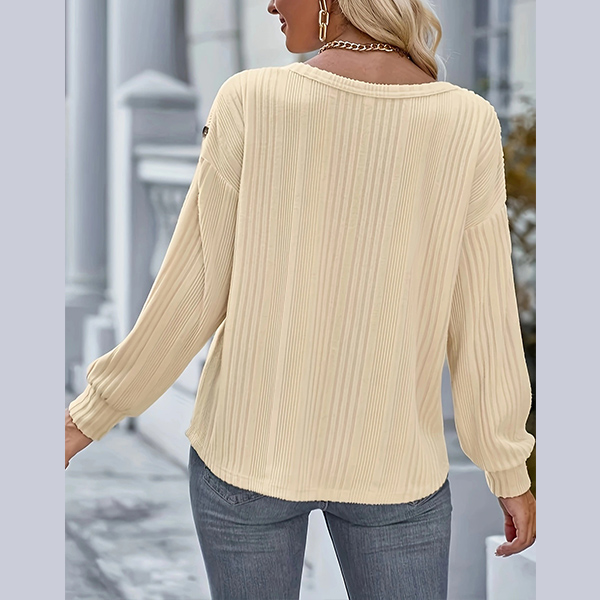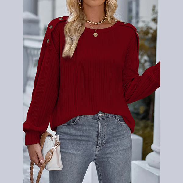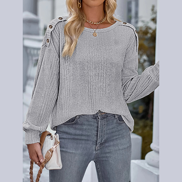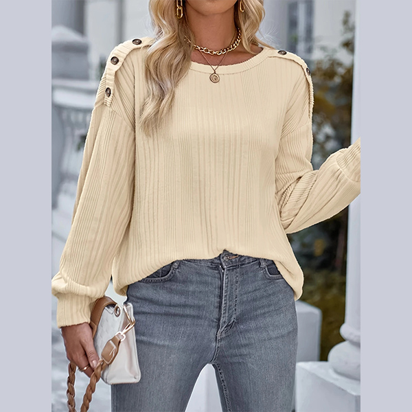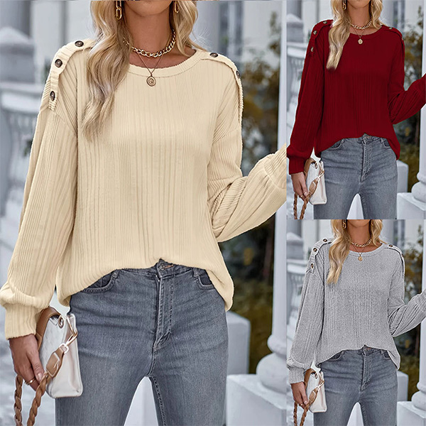 Crafted with high-quality fabric, this shirt offers a comfortable and fashionable fit. The round neck design adds a classic and timeless element. Long sleeve with buttons on the shoulder add some sophistication to it. Pair it with jeans, skirts, create a fashionable and chic ensemble.