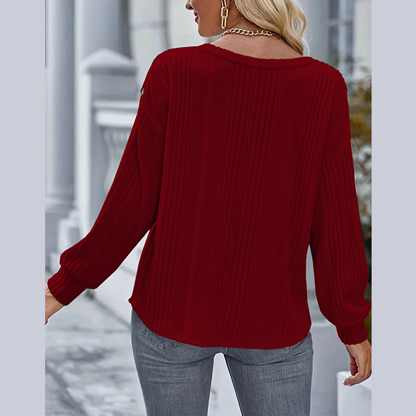 Fashion Round Neck Buttoned Long Sleeve Shirt