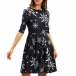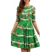 Fashion Round Neck Elbow Sleeve Printed Christmas Dress