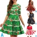 This beautiful Christmas dress is perfect for any holiday party! The round neck and elbow sleeves are both flattering and comfortable, while the printed design is festive and fun.
