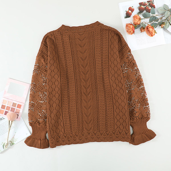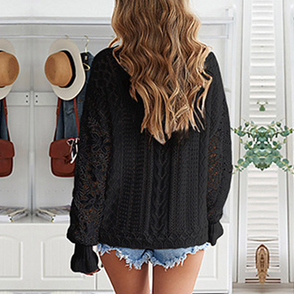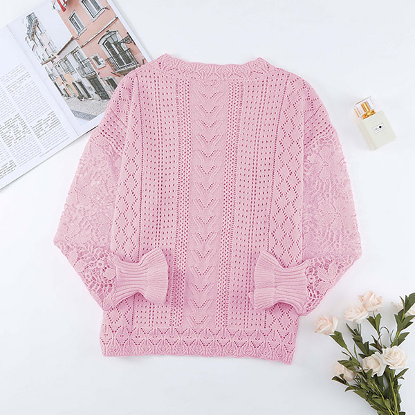 This fashion-forward knitted shirt is perfect for your next daily wear! The lace spliced long sleeve detail add a touch of femininity, wanna have a try?