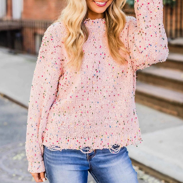Fashion Round Neck Long Sleeve Colorful Knitted Sweater