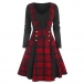 Fashion Round Neck Long Sleeve Double-breasted Fake Two-piece Dress