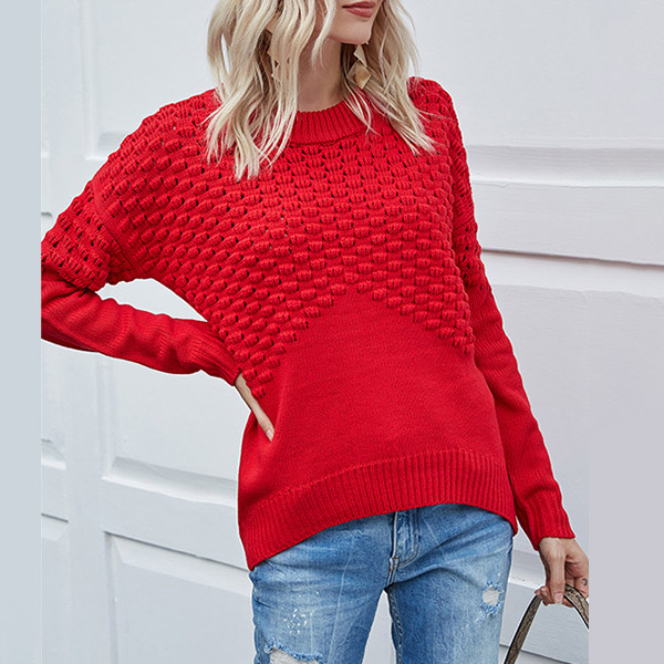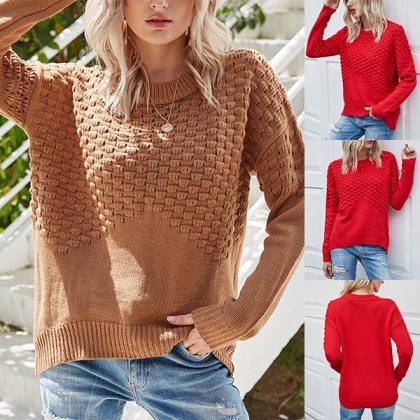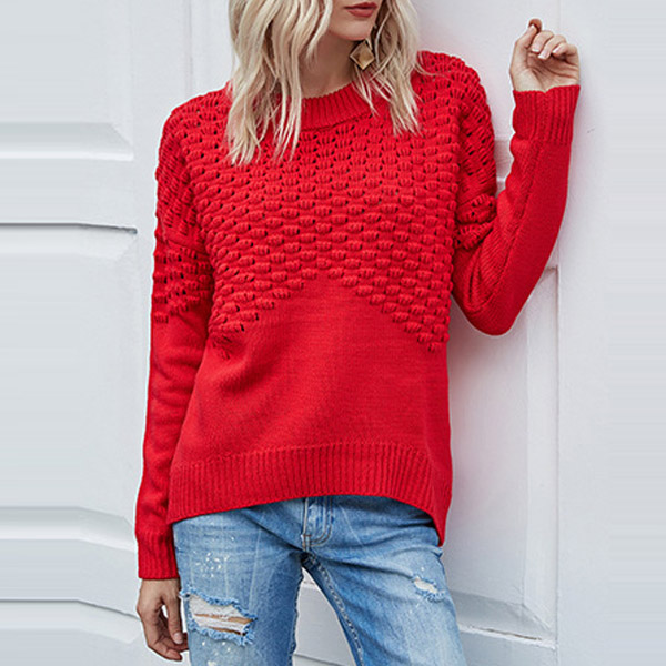 Fashion Round Neck Long Sleeve Hollow-out Sweater