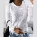 Fashion Round Neck Long Sleeve Lace Shirt
