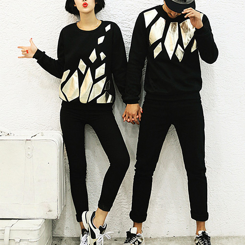 Wear this sweatshirt with your lover together,you will certainly receive many envious eyes. Crafted from cotton,skin-friendly,breathable and comfortable. Fashion round neck and long sleeve design. Front with gold patch design. Buy it for yourself and your lover.
