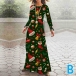 Fashion Round Neck Long Sleeve Printed Chritams Dress