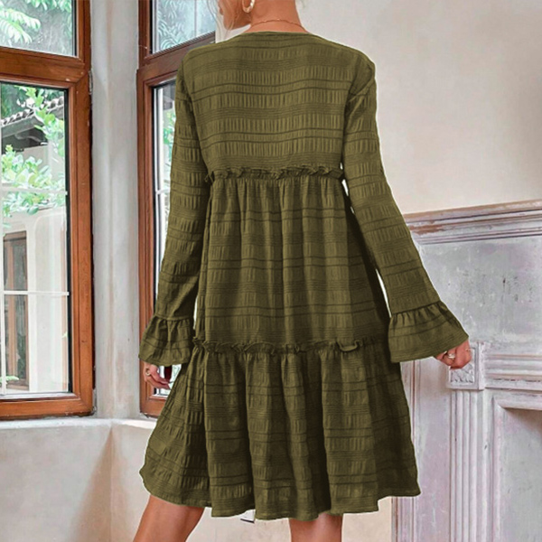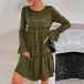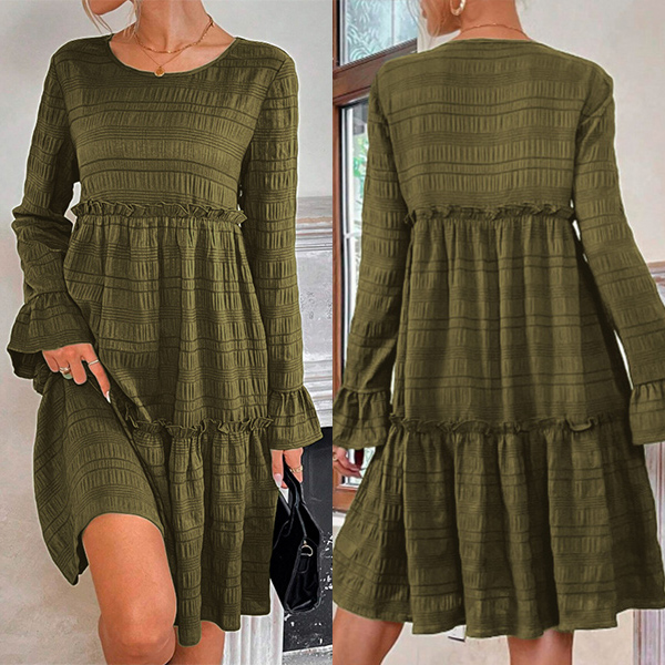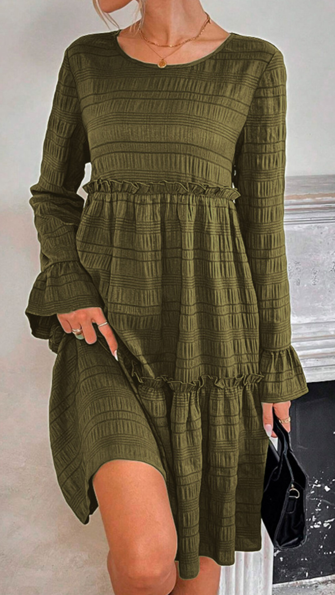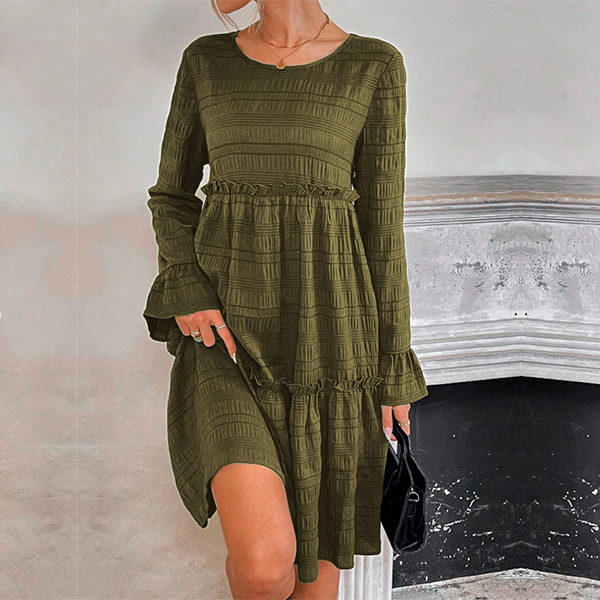 Fashion Round Neck Long Sleeve Ruffle Tiered Dress
