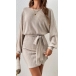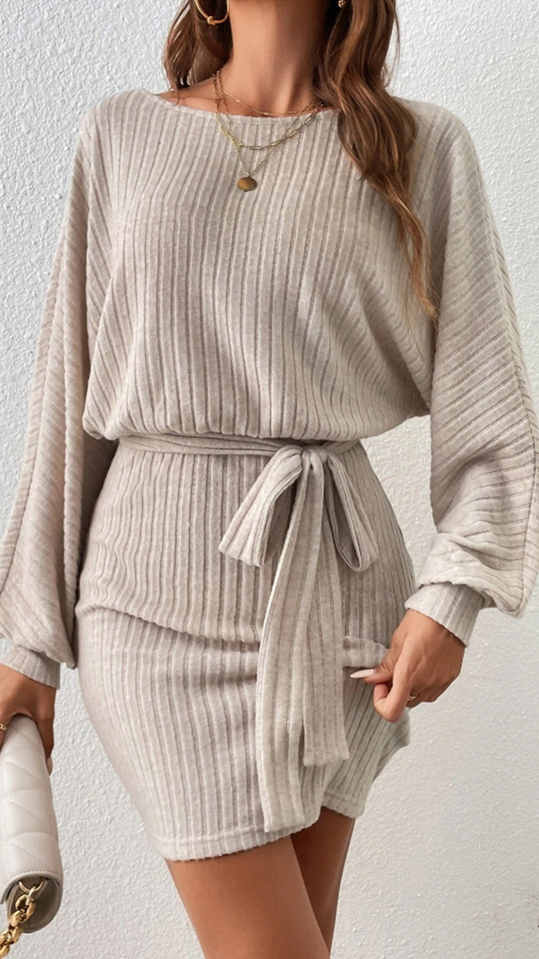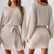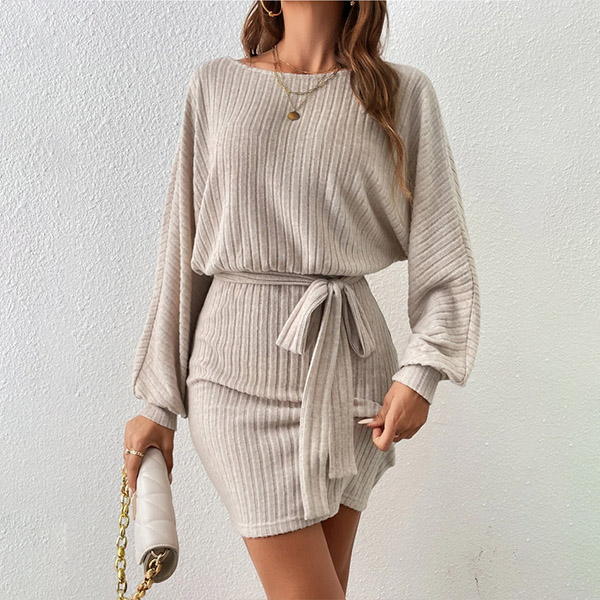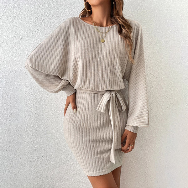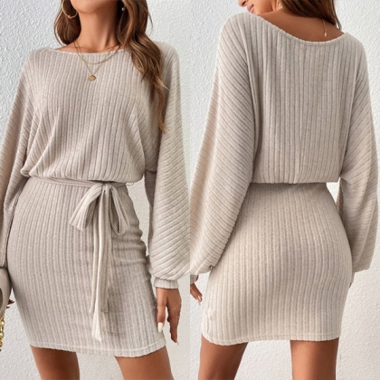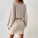 Featuring a V-neckline and long sleeves, this dress offers a classic and flattering silhouette. The solid color design adds simplicity and versatility, making it easy to style for various occasions.