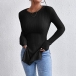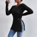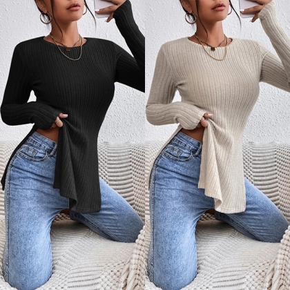 Featuring a round neckline, long sleeves, and slit details, this shirt offers a versatile and timeless silhouette. Wanna have a try?