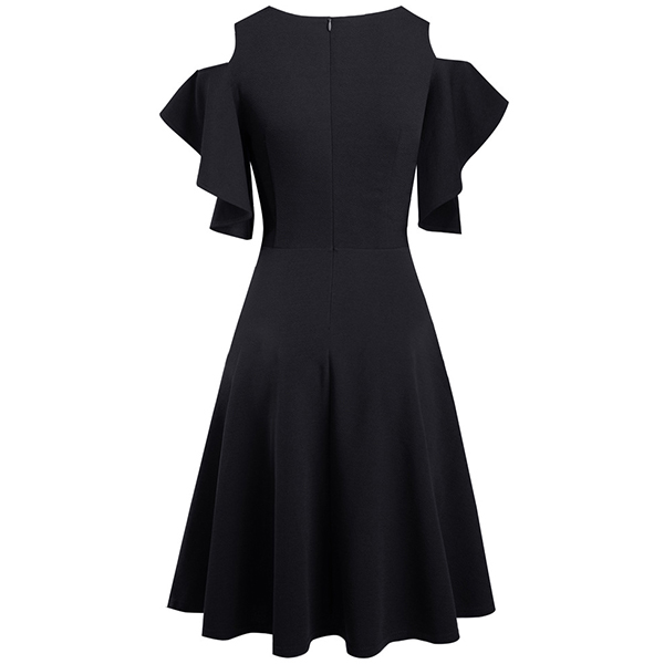Fashion Round neck Open-shoulder Short Sleeve High-rise Mini Dress