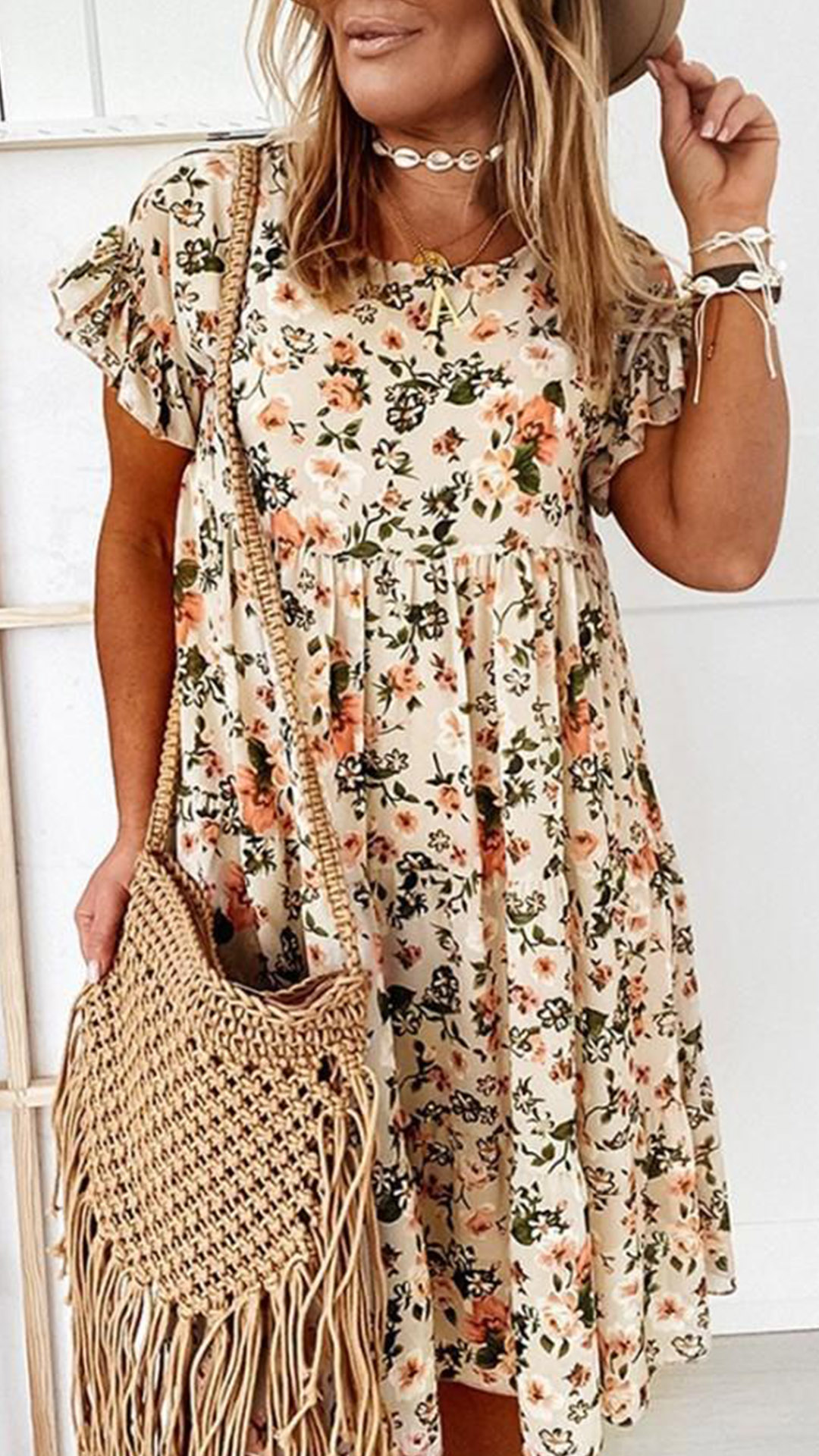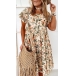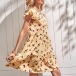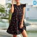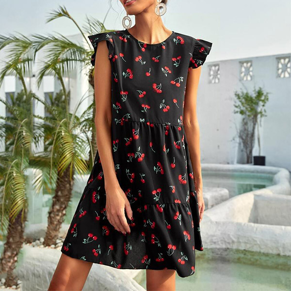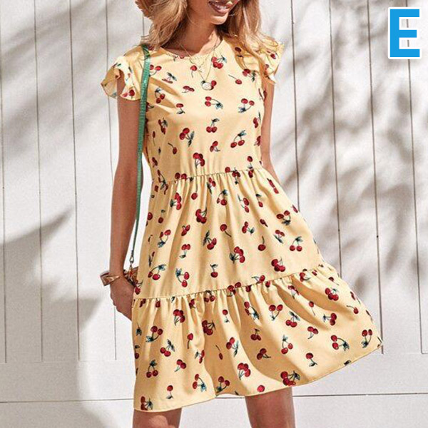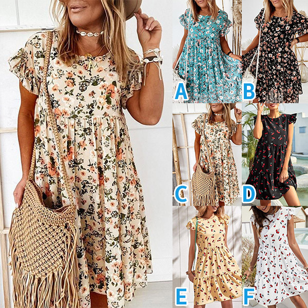 This summer, maybe you could try this relaxed and stylish dress to wear out. Features the overall floral printed, short sleeve with ruffle details, high waist with ruched details, this loose dress would make you stand out of crowd easily.