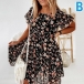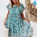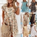 Fashion Round Neck Ruffle Short Sleeve Floral Printed Loose Dress