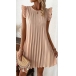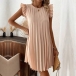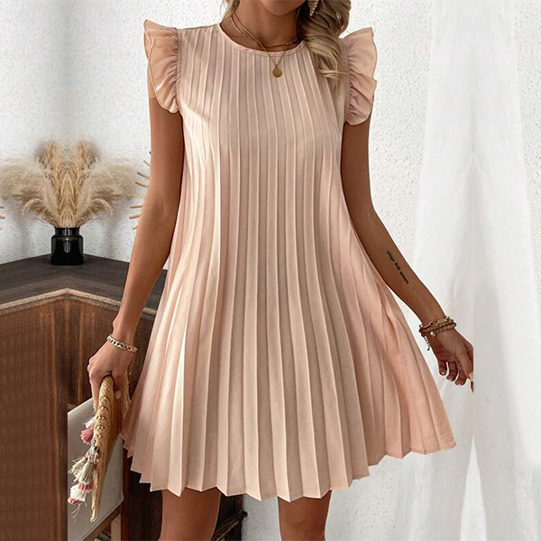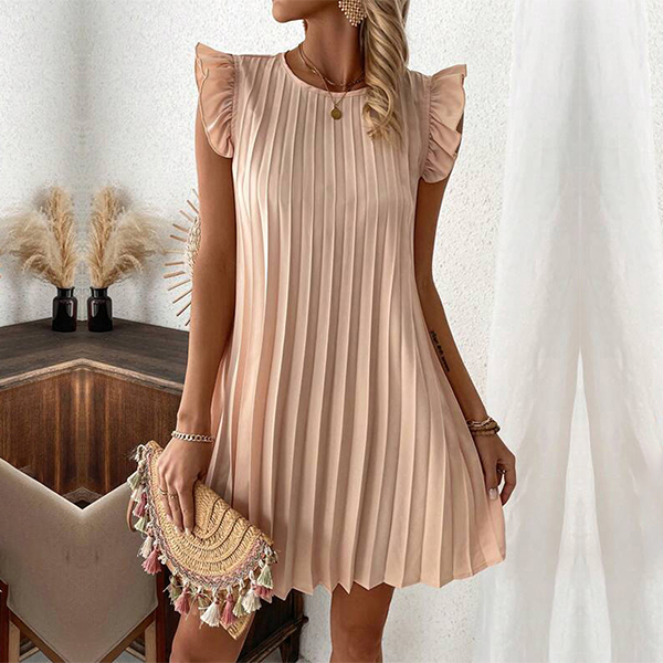 Fashion Round Neck Ruffle Sleeveless Pleated Mini Dress