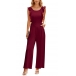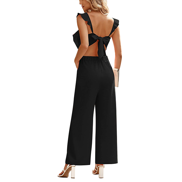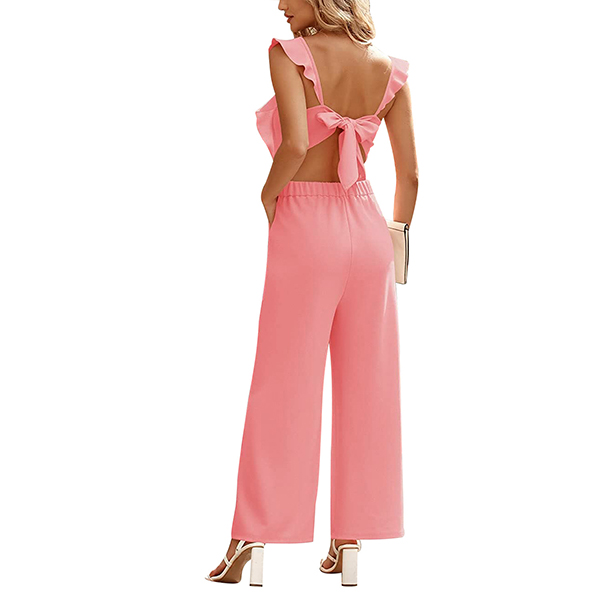 Fashion Round Neck Ruffled Sleeveless Self-tie Backless Wide-leg Jumpsuit