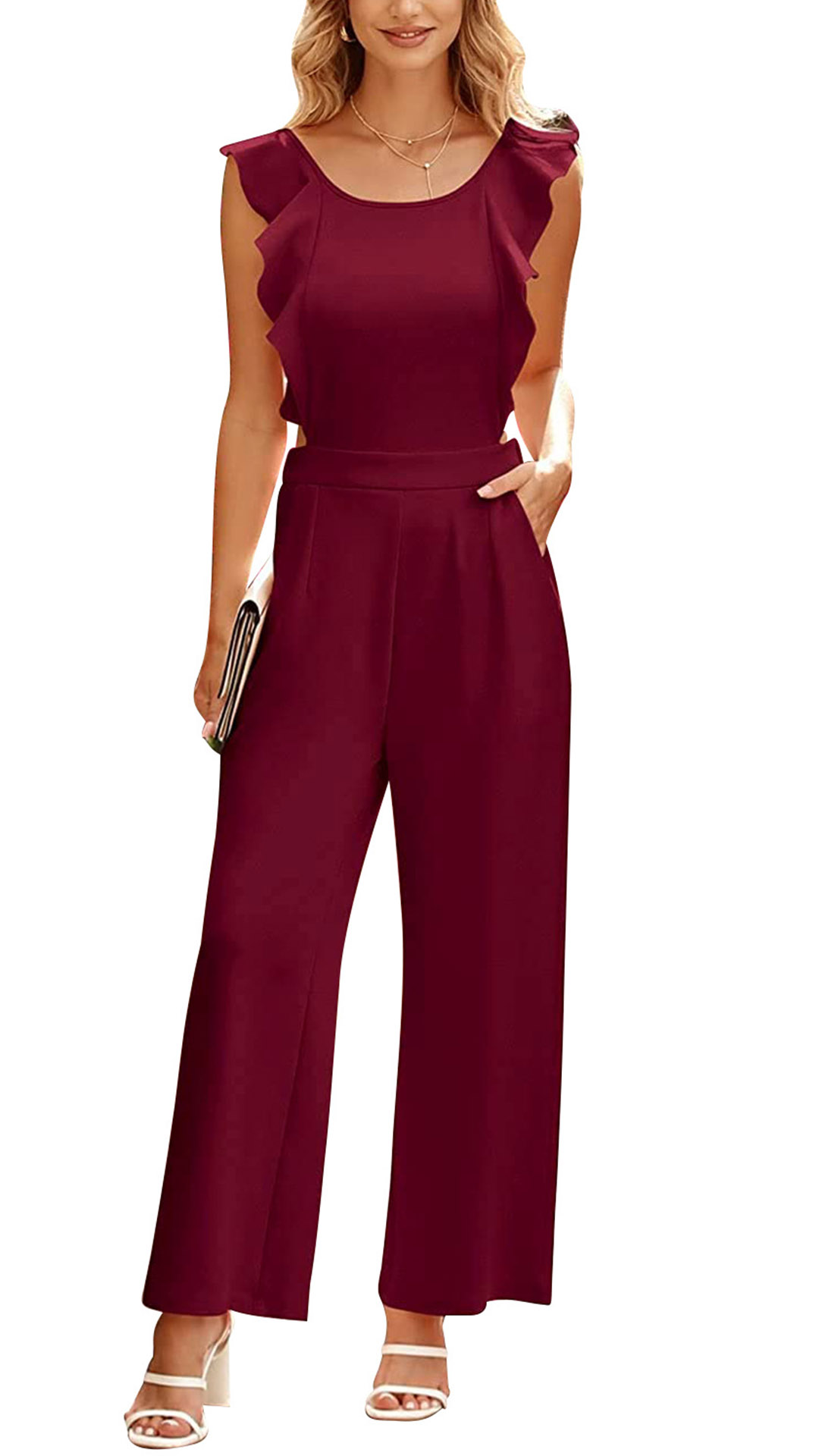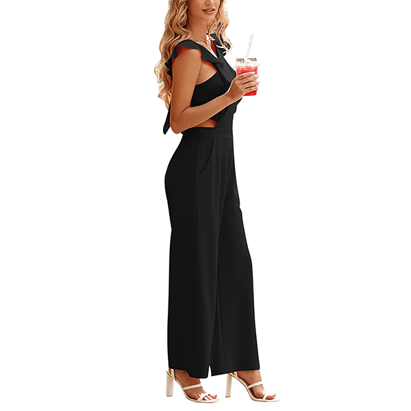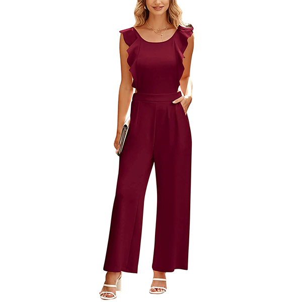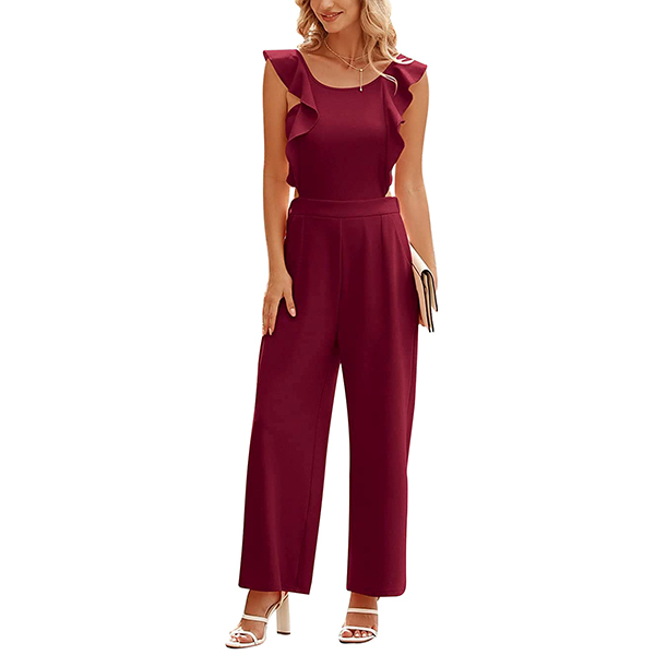 This stunning piece is a perfect blend of elegance and modern style. The round neck and ruffled sleeves add a touch of femininity, while the backless design adds a hint of allure. Crafted from high-quality fabric, this jumpsuit offers comfort and breathability for all-day wear.