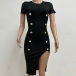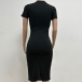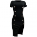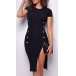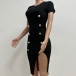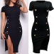 Fashion Round Neck Short Sleeve Buttoned Slit Bodycon Dress