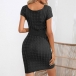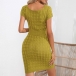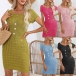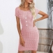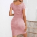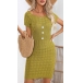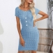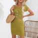 Fashion Round Neck Short Sleeve Buttoned Twisted Knit Dress