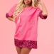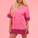Fashion Round Neck Short Sleeve Heart Printed Sequin Mini Dress