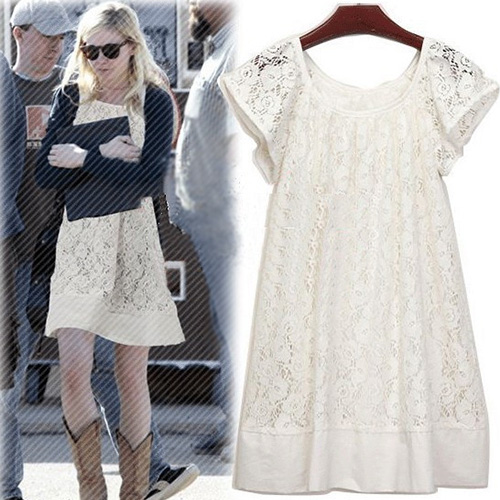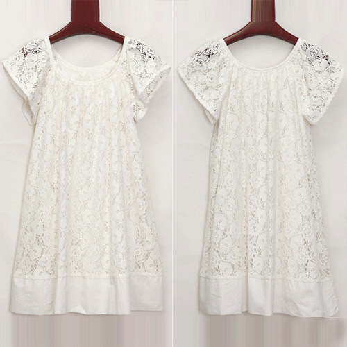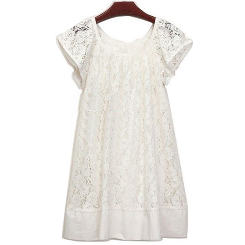 Fashion Round Neck Short Sleeve Hollow Out Lace Dress