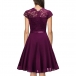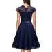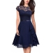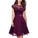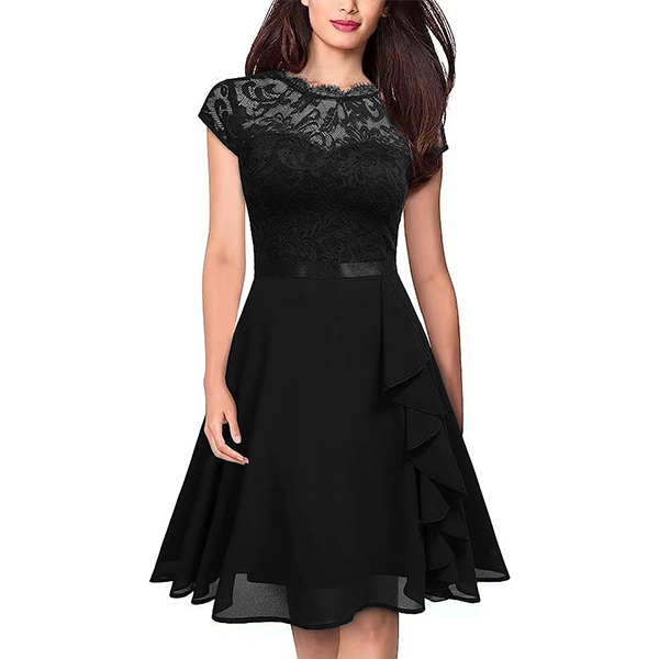 Fashion Round neck Short Sleeve Lace Spliced Chiffon Ruffle Dress
