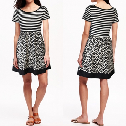 short sleeve and stripes and chic printed design. Its cozy and soft material can keep you comfy all day.