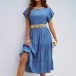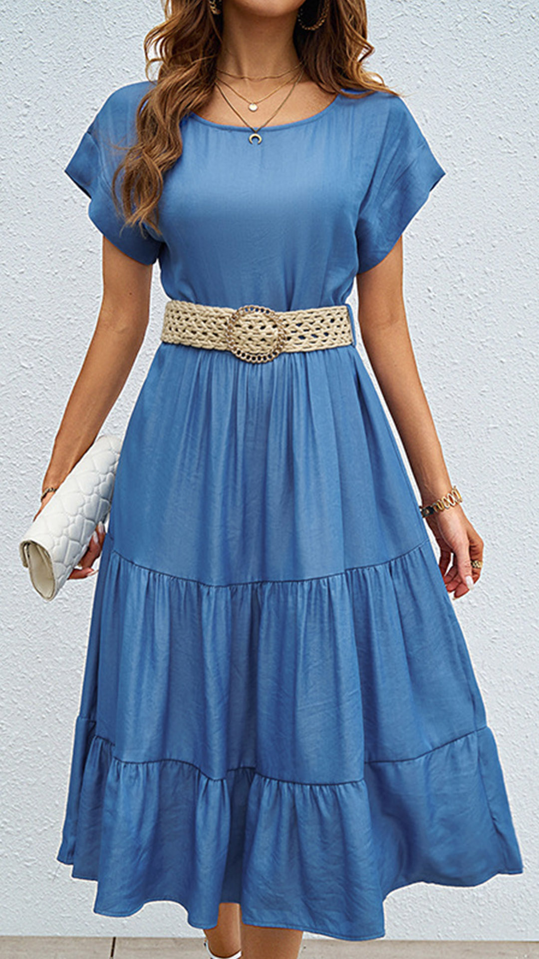 Fashion Round Neck Short Sleeve Tiered Dress without Belt