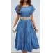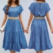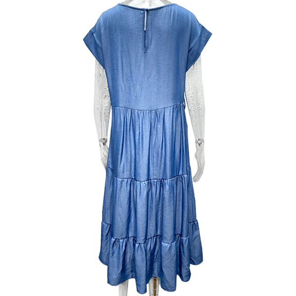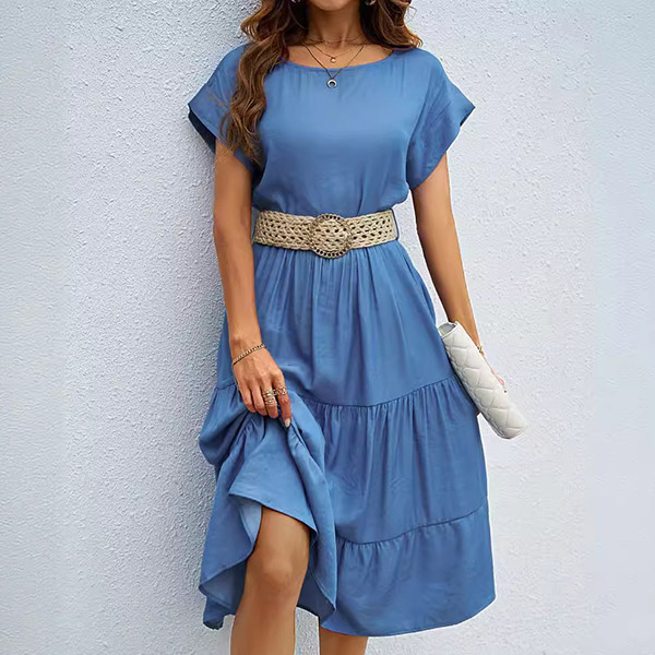 This stylish dress features a round neckline, short sleeves, and a tiered skirt design, creating a flattering and flowing silhouette without the addition of a belt. Hope you like it.