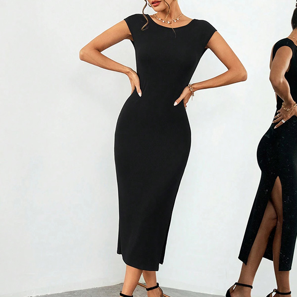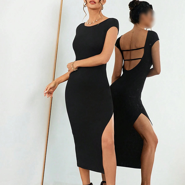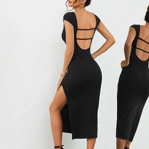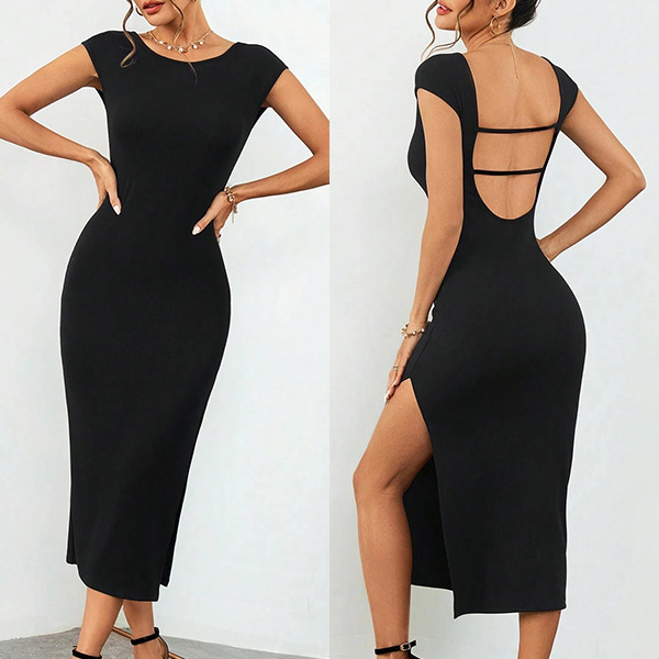 This captivating and figure-hugging dress features a round neckline, a daring backless design, and a dramatic side slit to create a stunning and fashion-forward silhouette. Wanna have a try?
